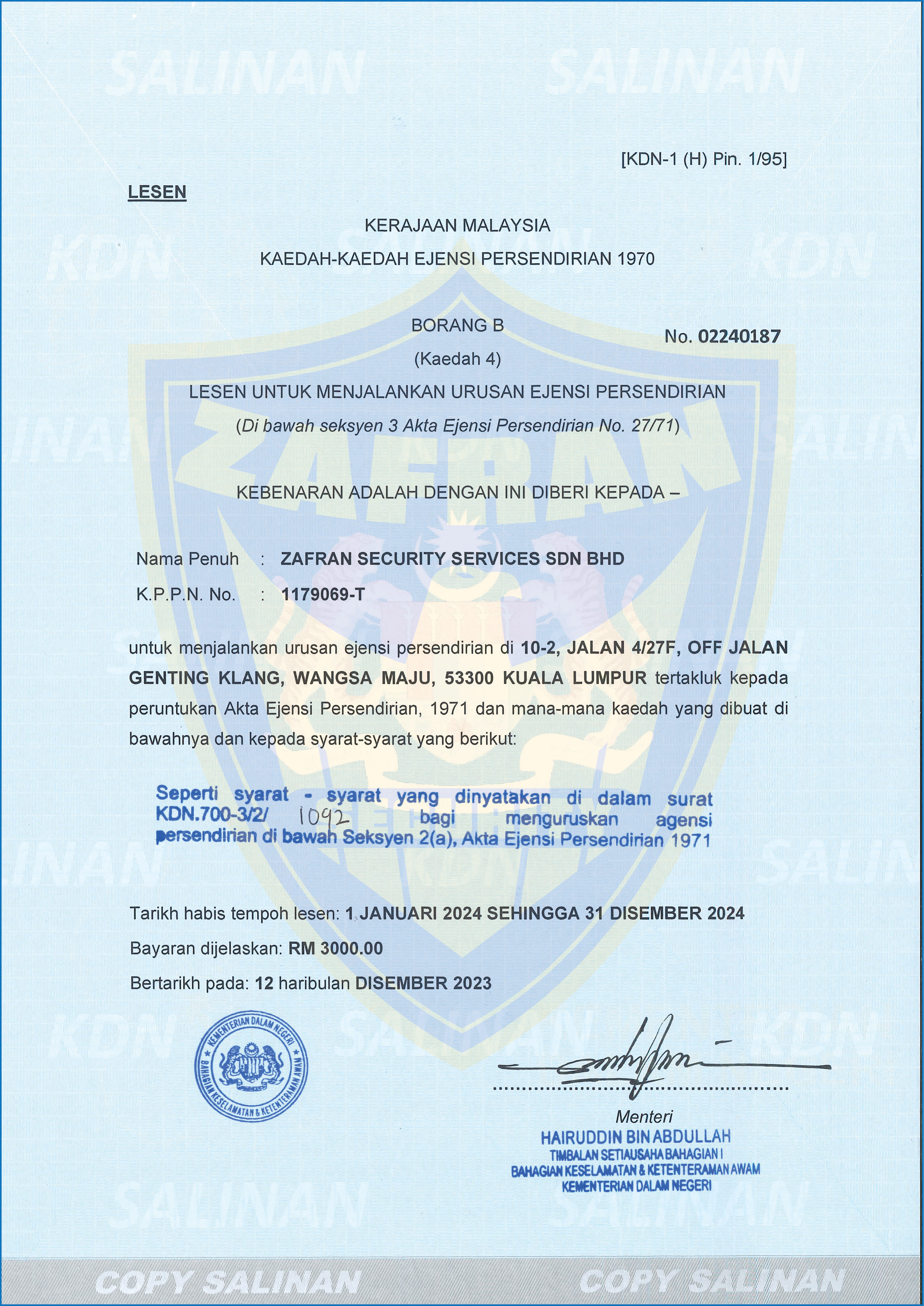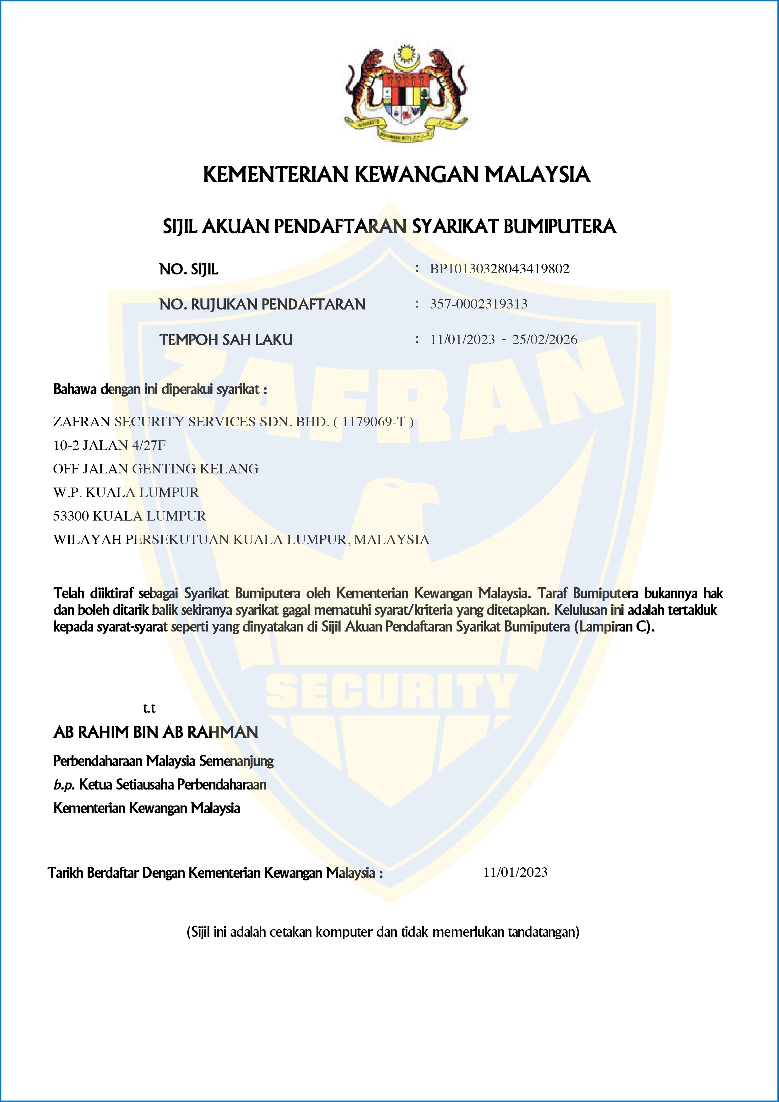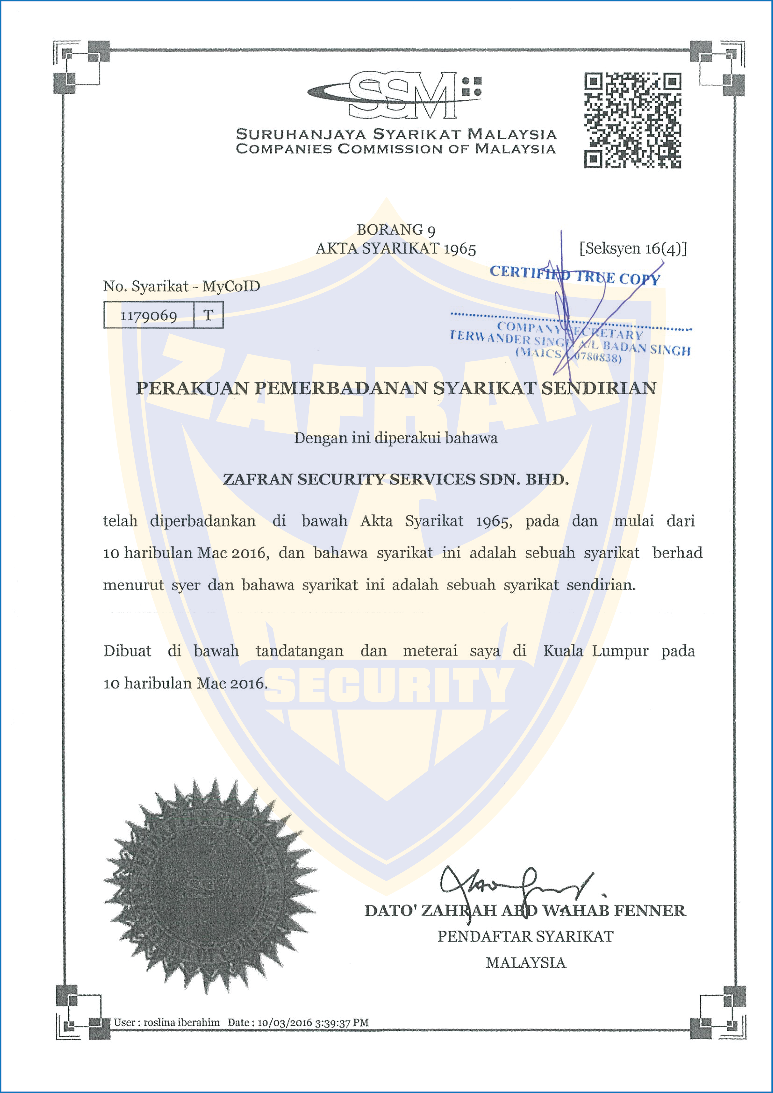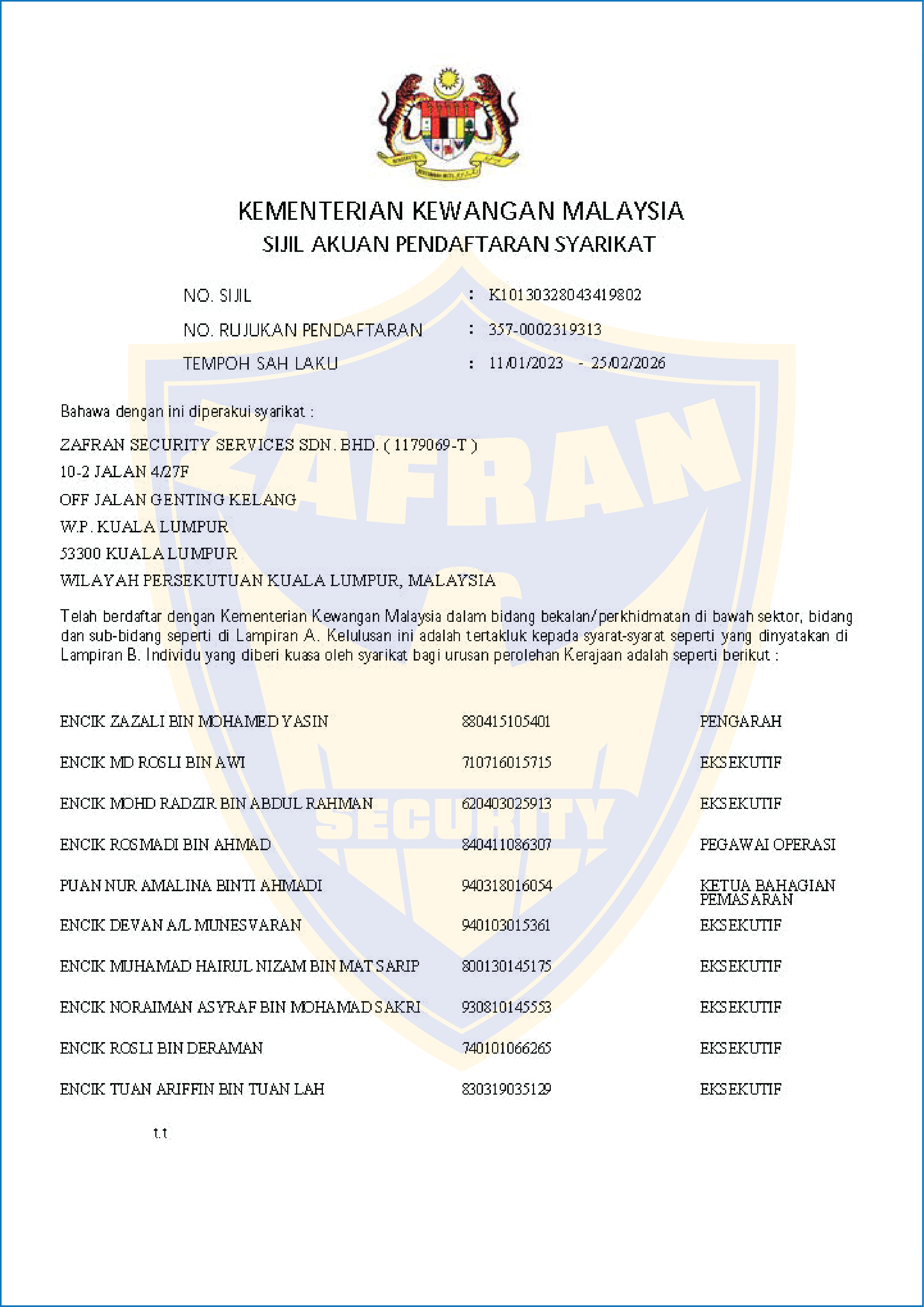 ZAFRAN SECURITY SERVICES SDN BHD
